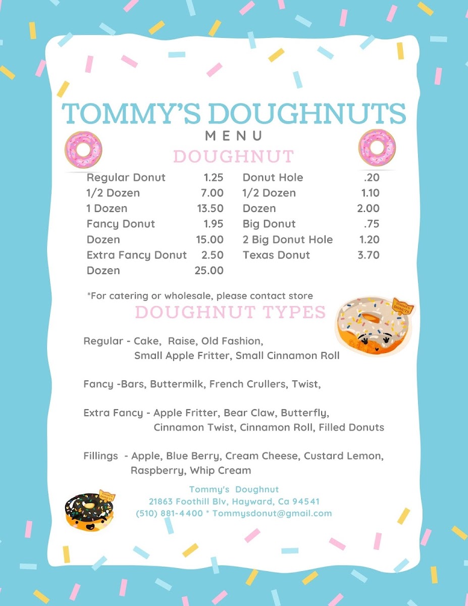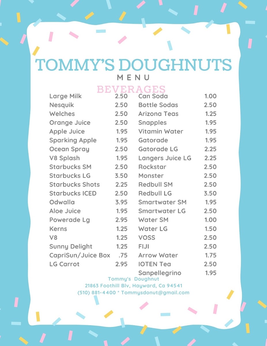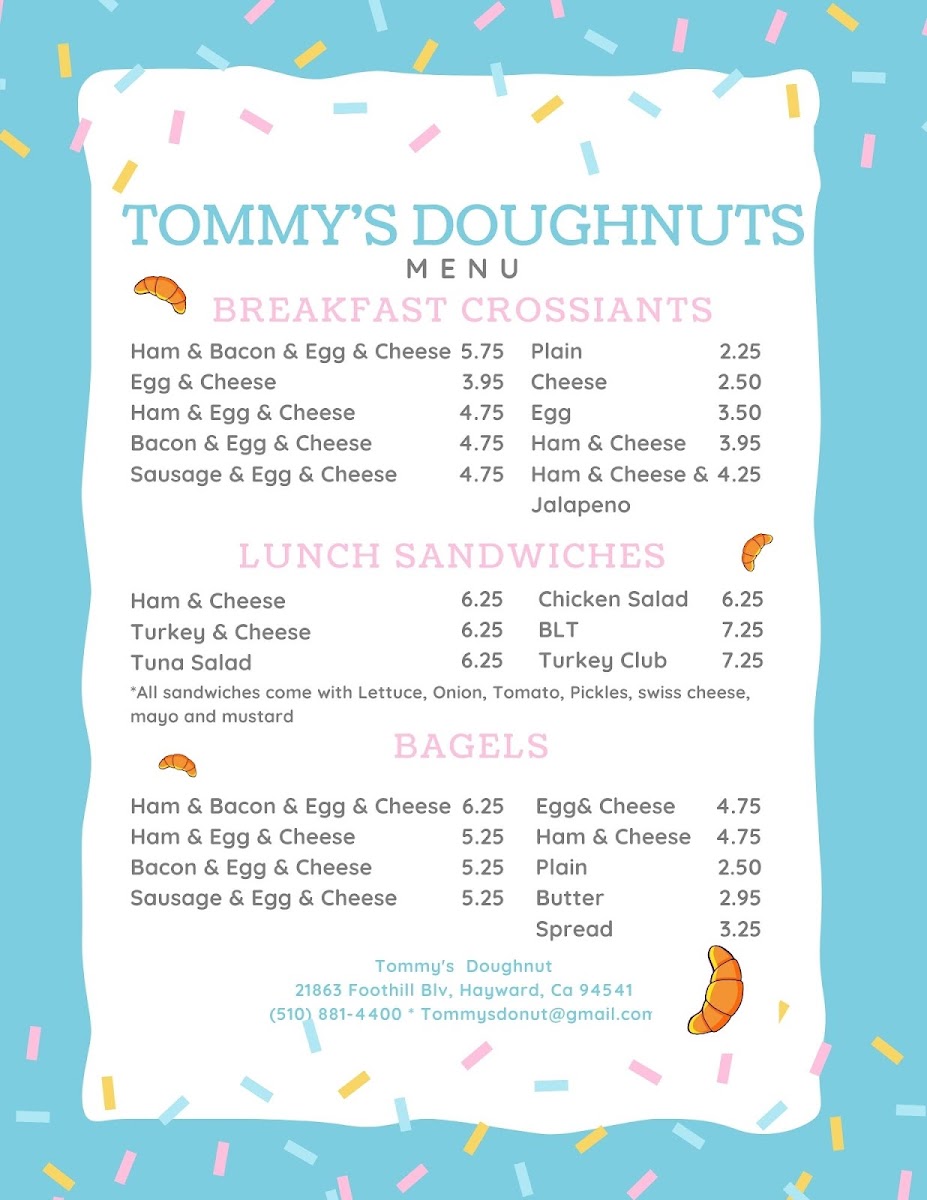 Tommy's Doughnuts offers a straightforward, inviting menu that blends classic café fare with comforting breakfast and dessert treats. The selection centers around freshly made doughnuts—ranging from simple glazed buttermilk to more indulgent filled varieties—as well as a mix of pastries like cinnamon rolls, croissant sandwiches, and apple turnovers.